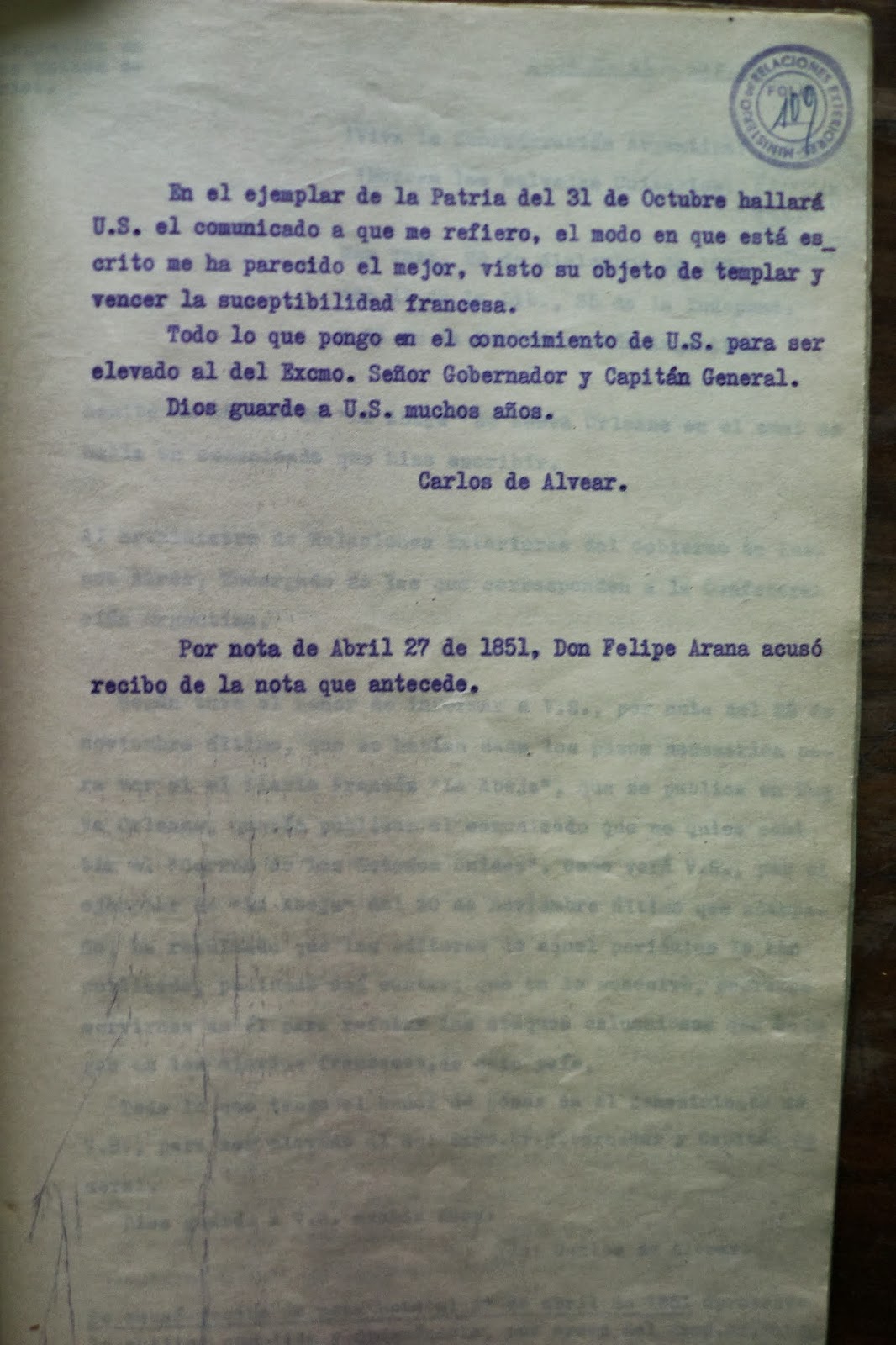 Fue el Dr. Felipe Arana, Ministro de Relaciones Exteriores del Gobierno de Buenos Aires quien encargó a Alvear la contestación de cada uno de los infundios que se multiplicaban en muchos de los periódicos que circulaban por ese entonces en el vasto territorio de los Estados Unidos y que si no puede decirse que ocuparan las portadas no por ello dejaba de ser cierto que continuaban desdibujando la realidad en cuanta oportunidad se presentaba para escribir sobre el tema.
